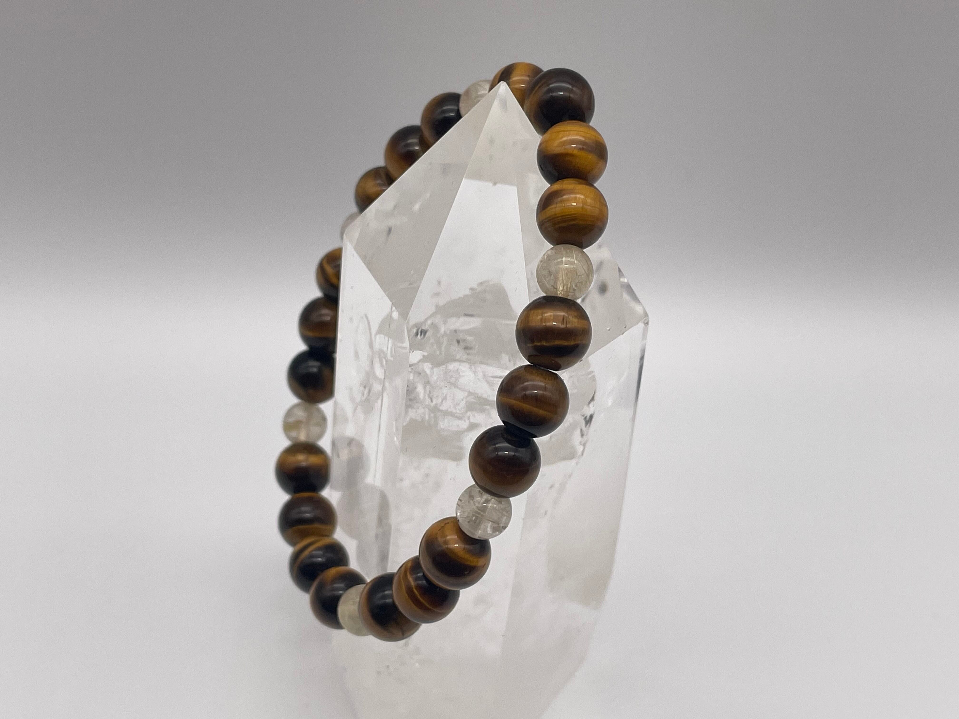 非常に透明度の高いルチルクォーツをワンポイントに、高ランクのタイガーアイをメインで作られたパワーストーンブレスレットになります。