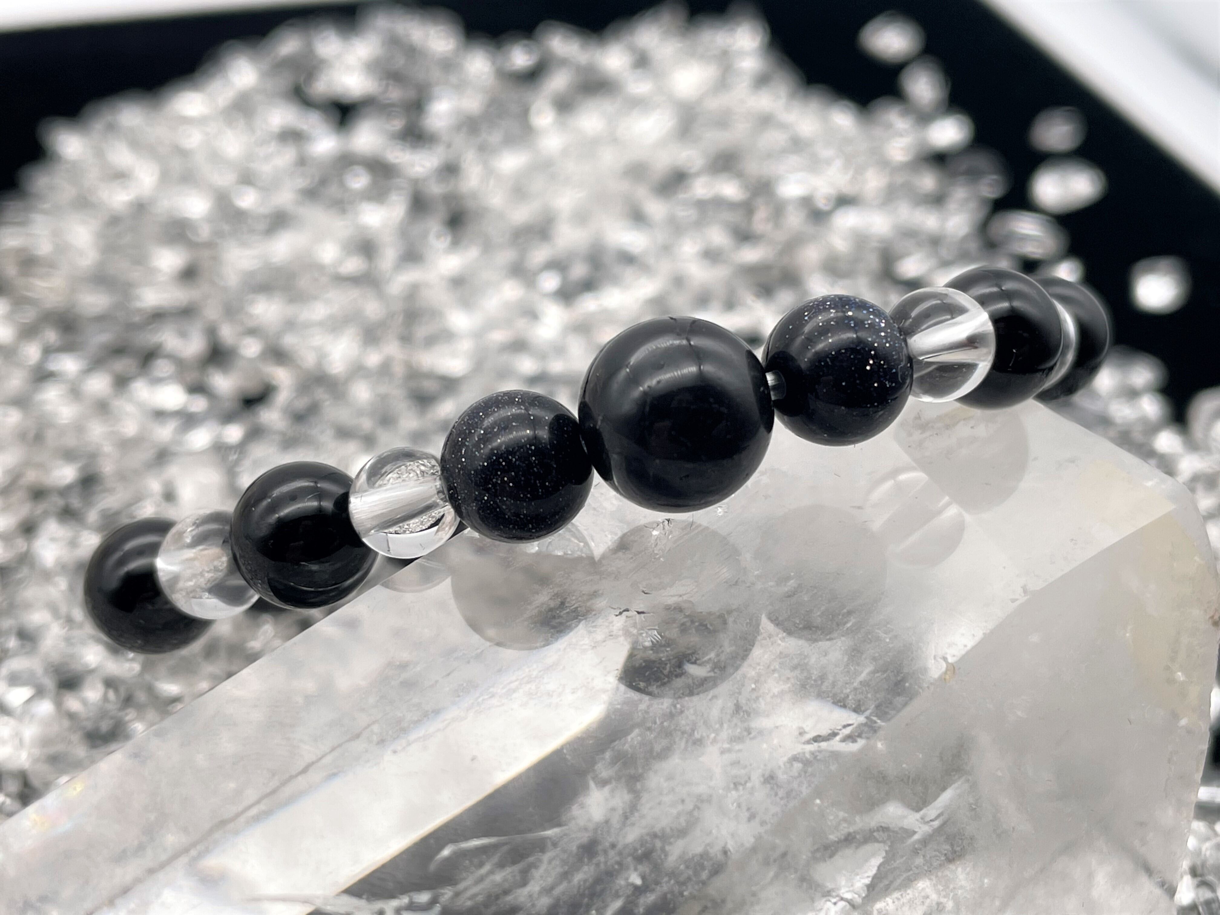 石のサイズ:ブラックトルマリン【10mm】紫金石【8mm】水晶【6mm】オニキス【8mm】