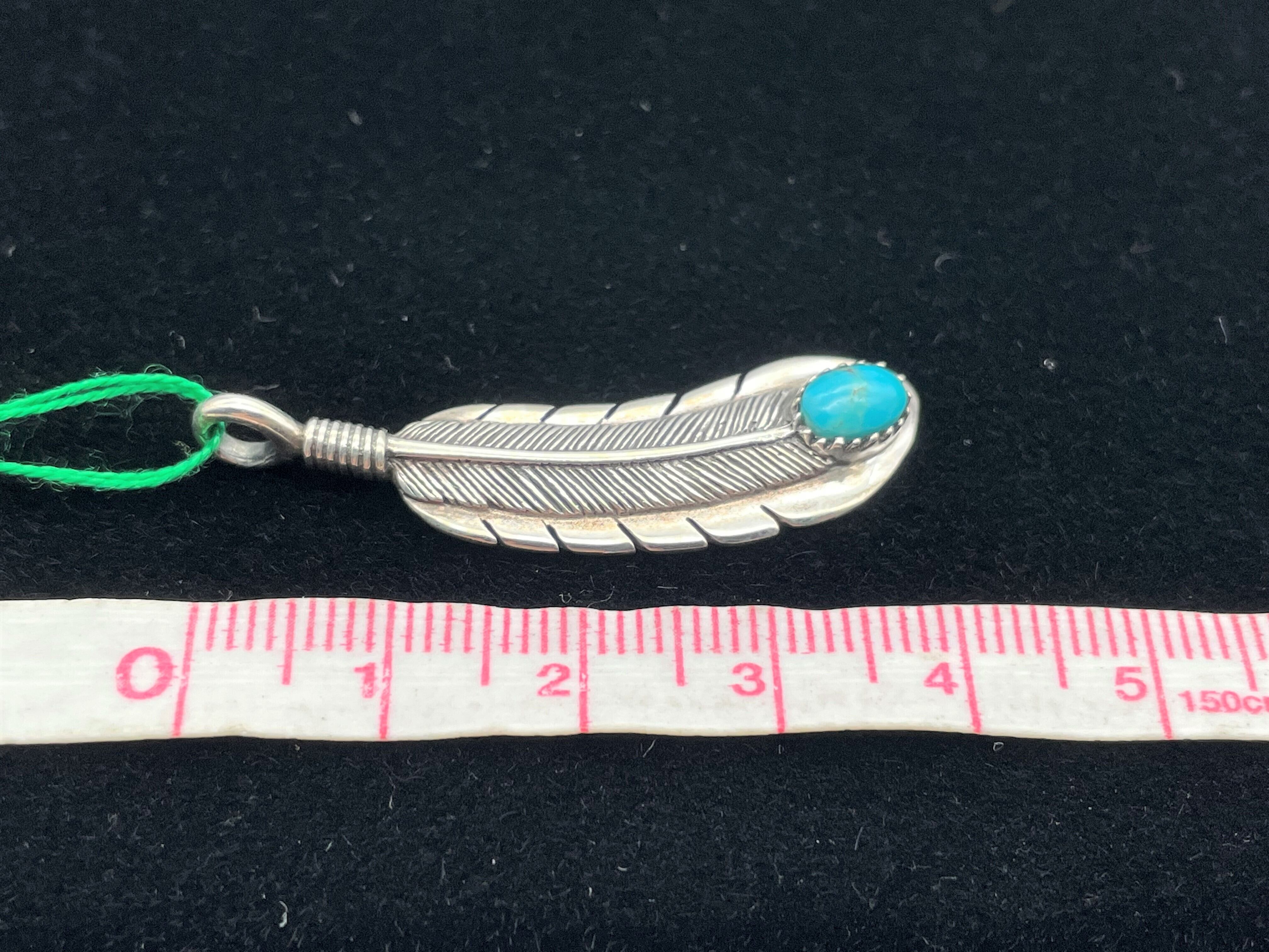 シルバーの羽にターコイズが埋め込まれた925シルバーペンダントトップになります。