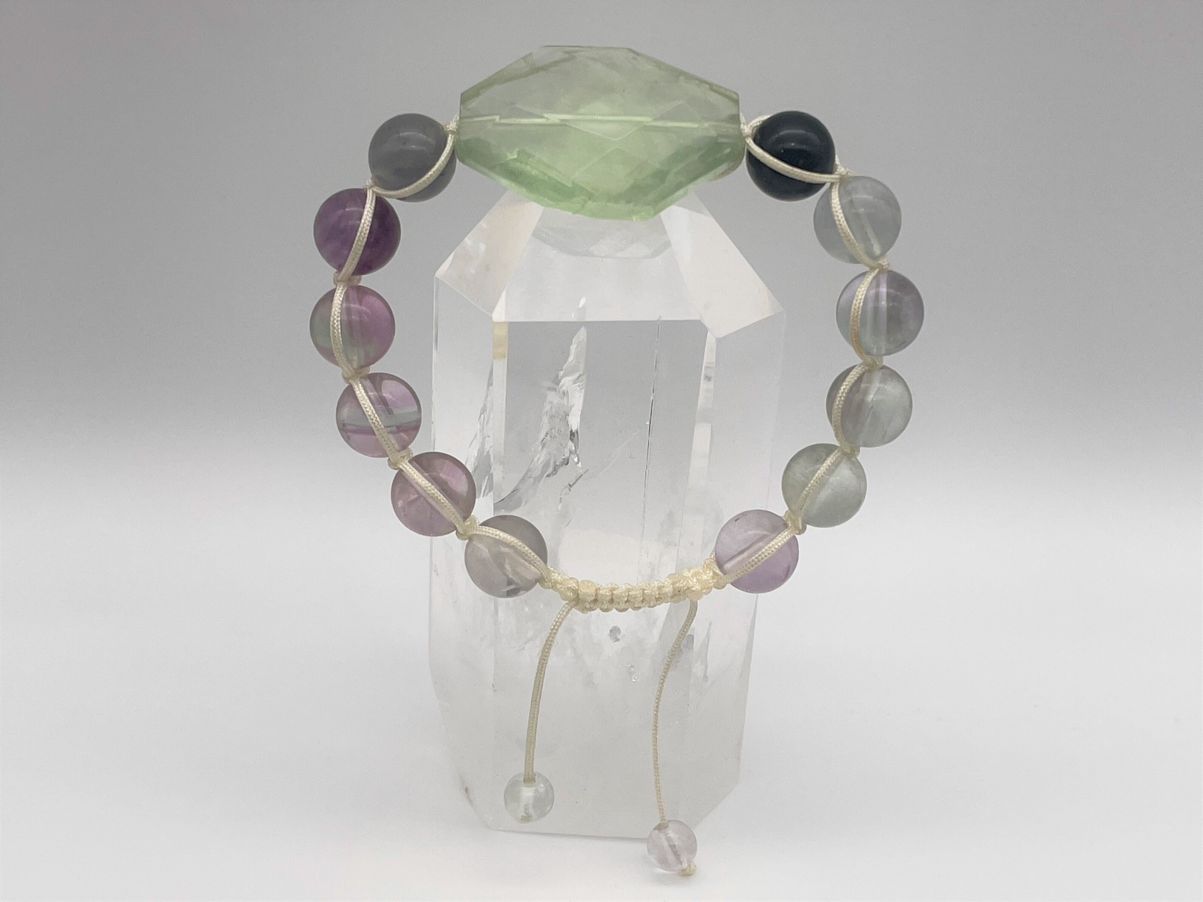 特大フローライトを中心に10mmを装飾した編みブレスレットになります。
