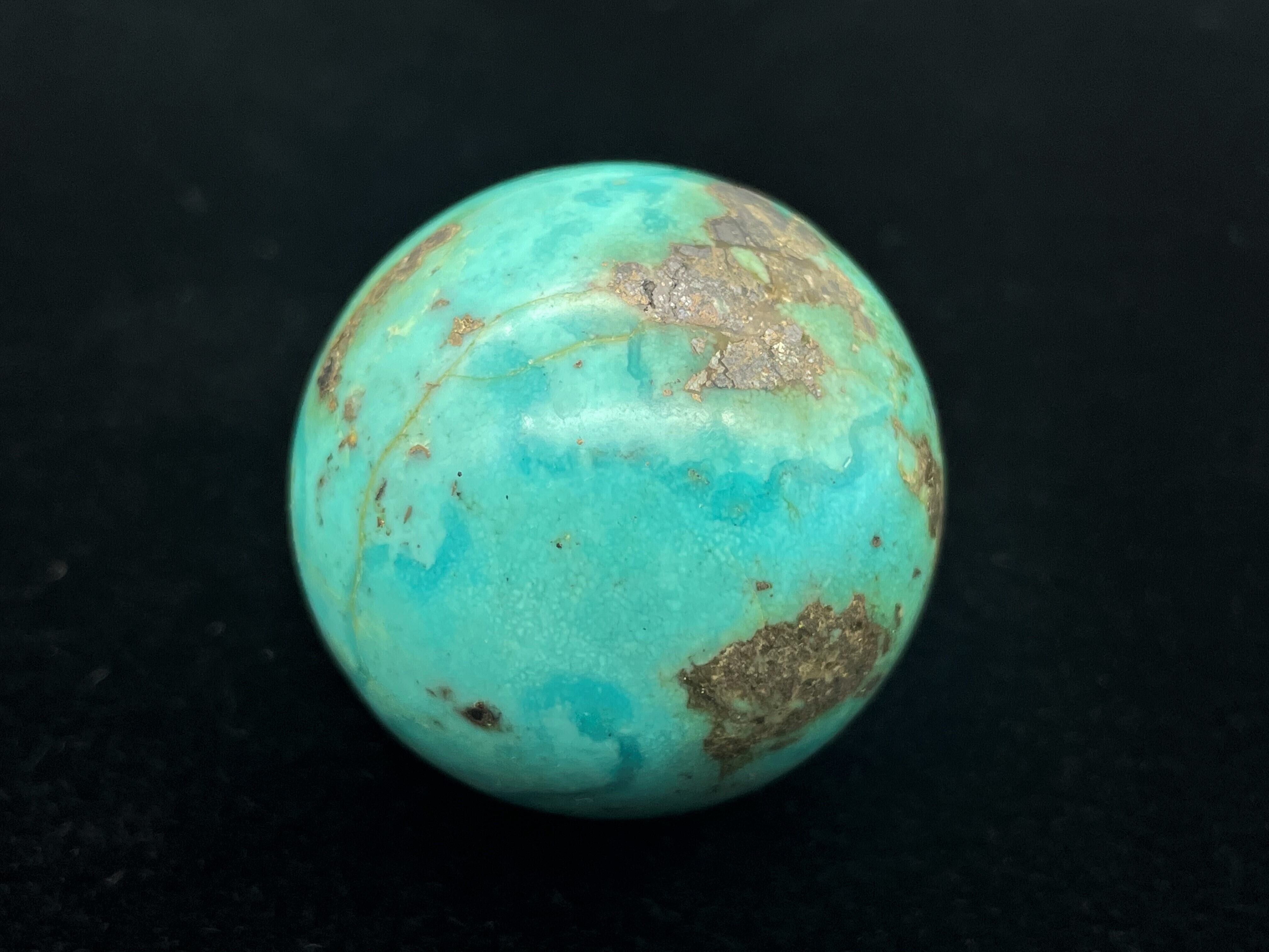 パイライトインクルージョンが含まれているトルコ石の丸玉になります。