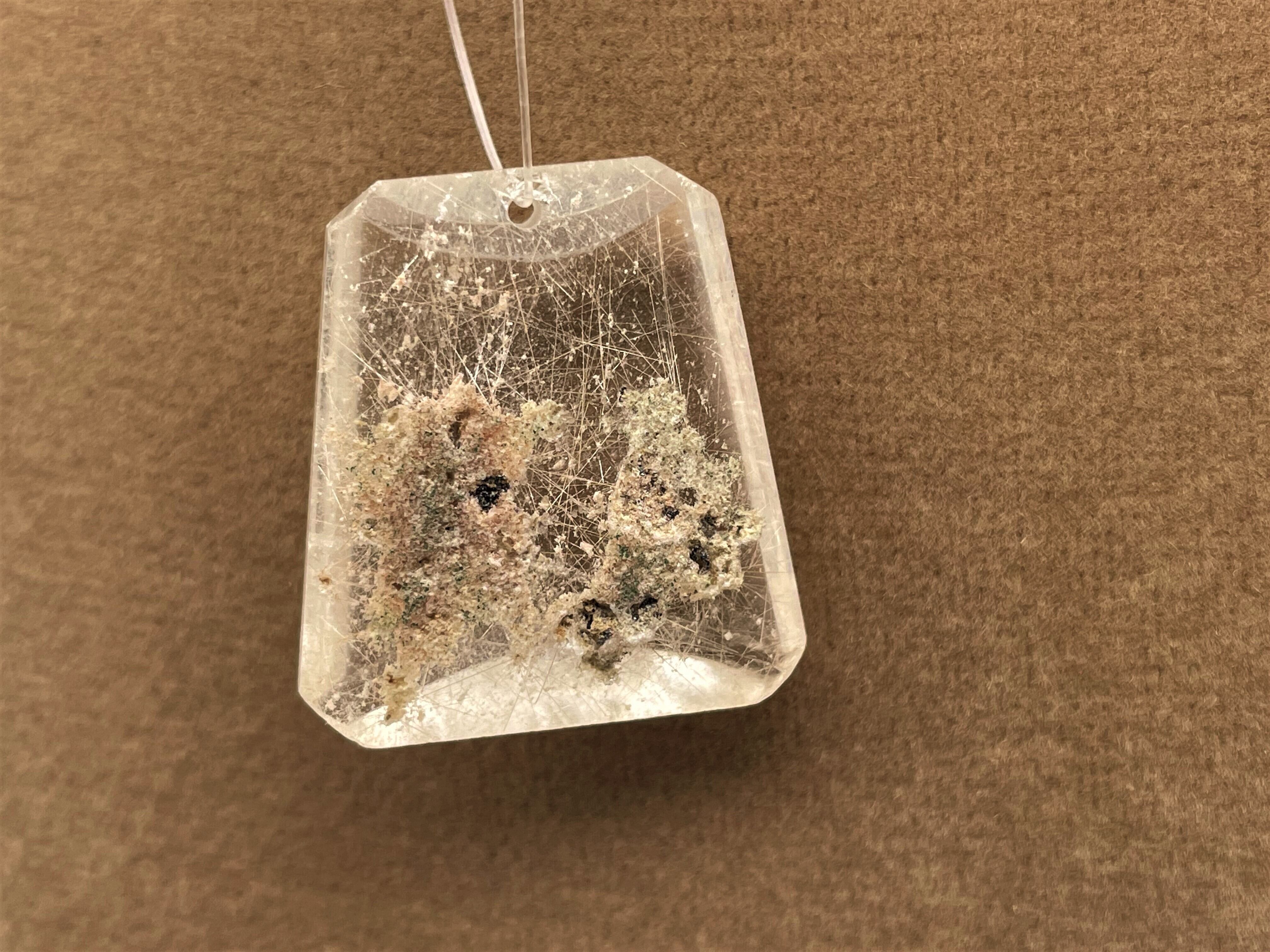 ガーデンルチルクォーツのペンダントトップ用の素材になります。金具等は付属しておりませんので、オリジナルのペンダントトップの作成にぜひご利用ください。