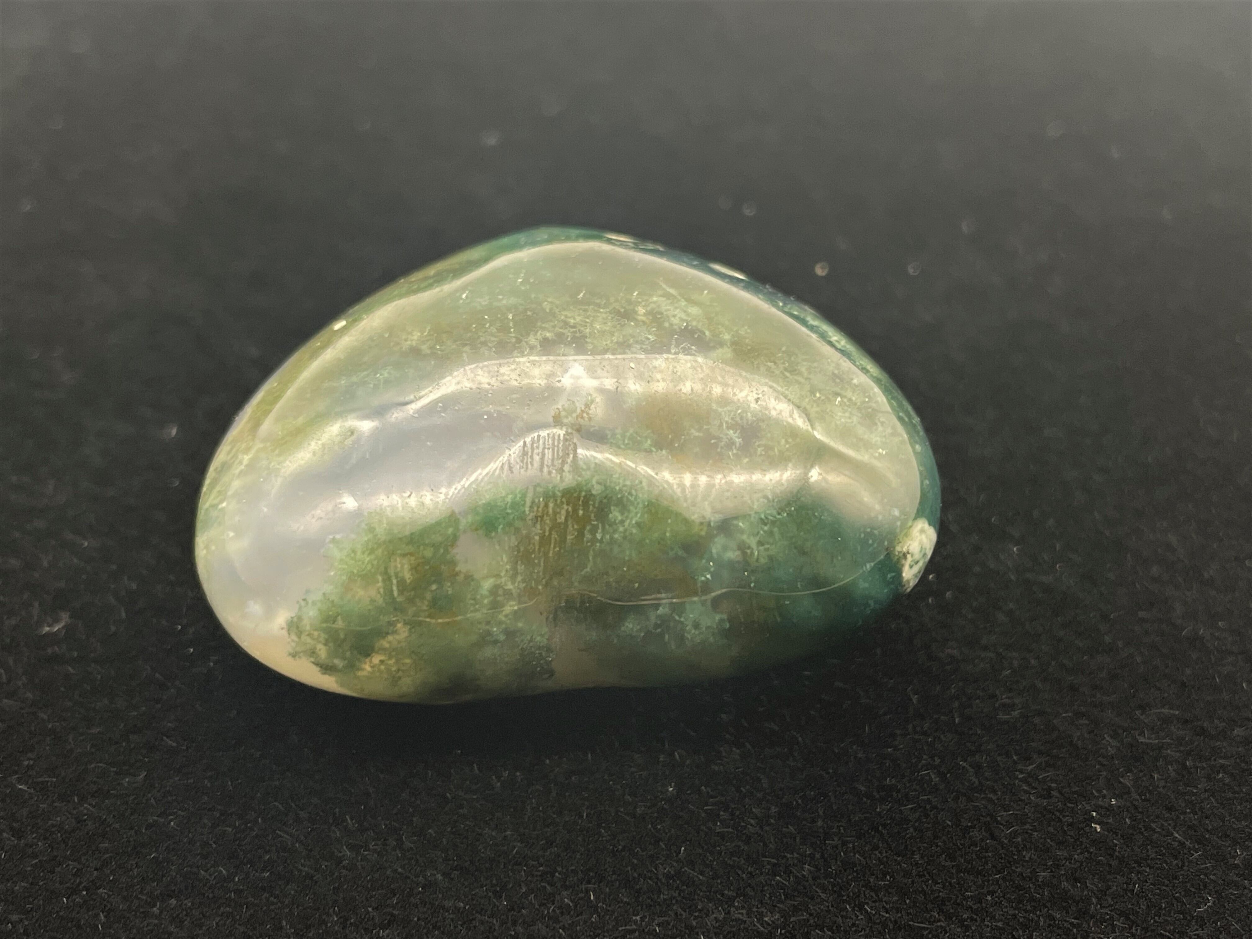 モスアゲートは瑪瑙の中に様々な内包物が入り、苔や樹形に見えるものを云い、森林浴と同じ効果があるとされ、心身を安定させ、持ち主に自然の恵みを与えてくれると云われております。