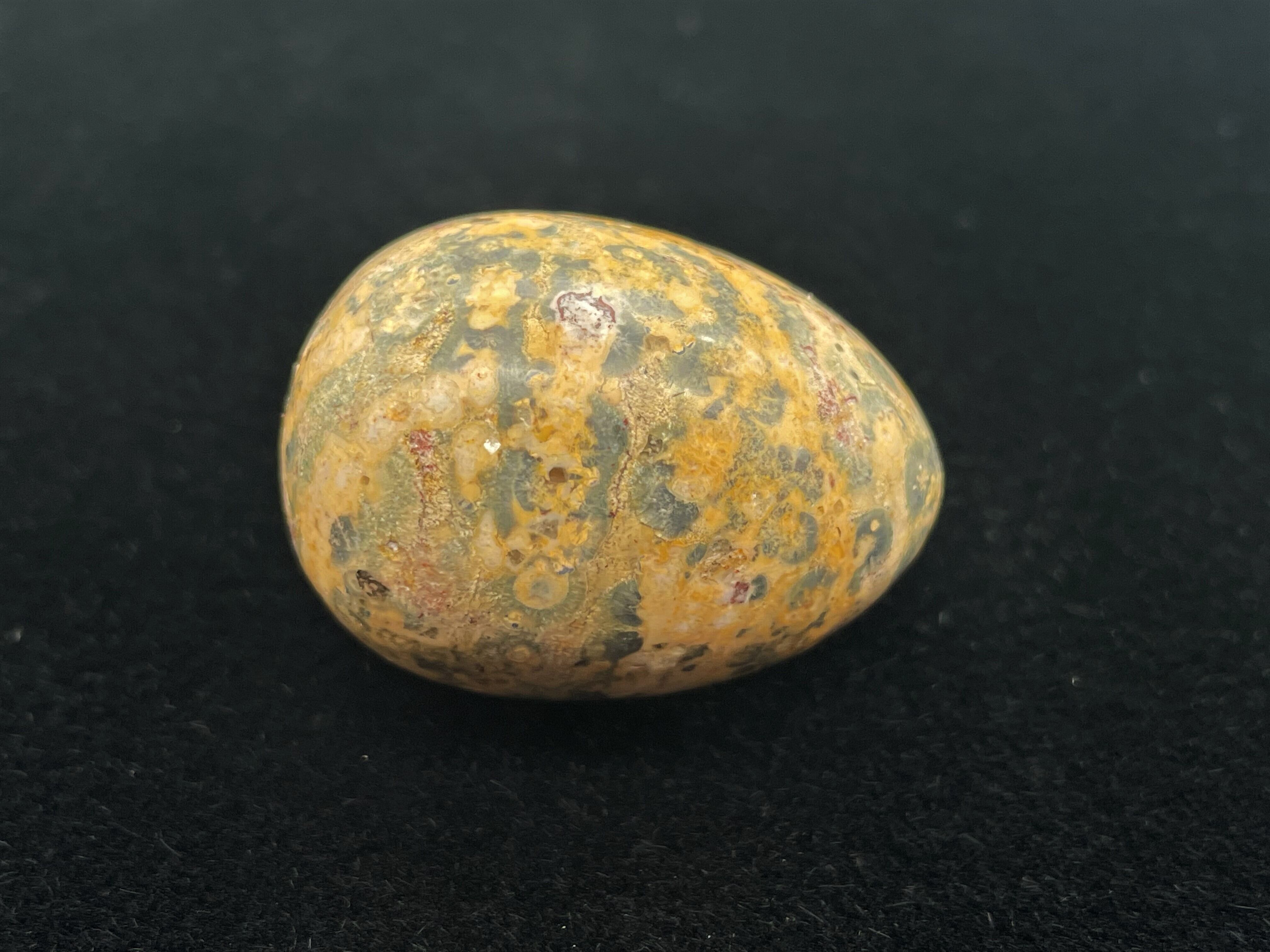 卵型にデザインされたレオパードスキンジャスパーになります。