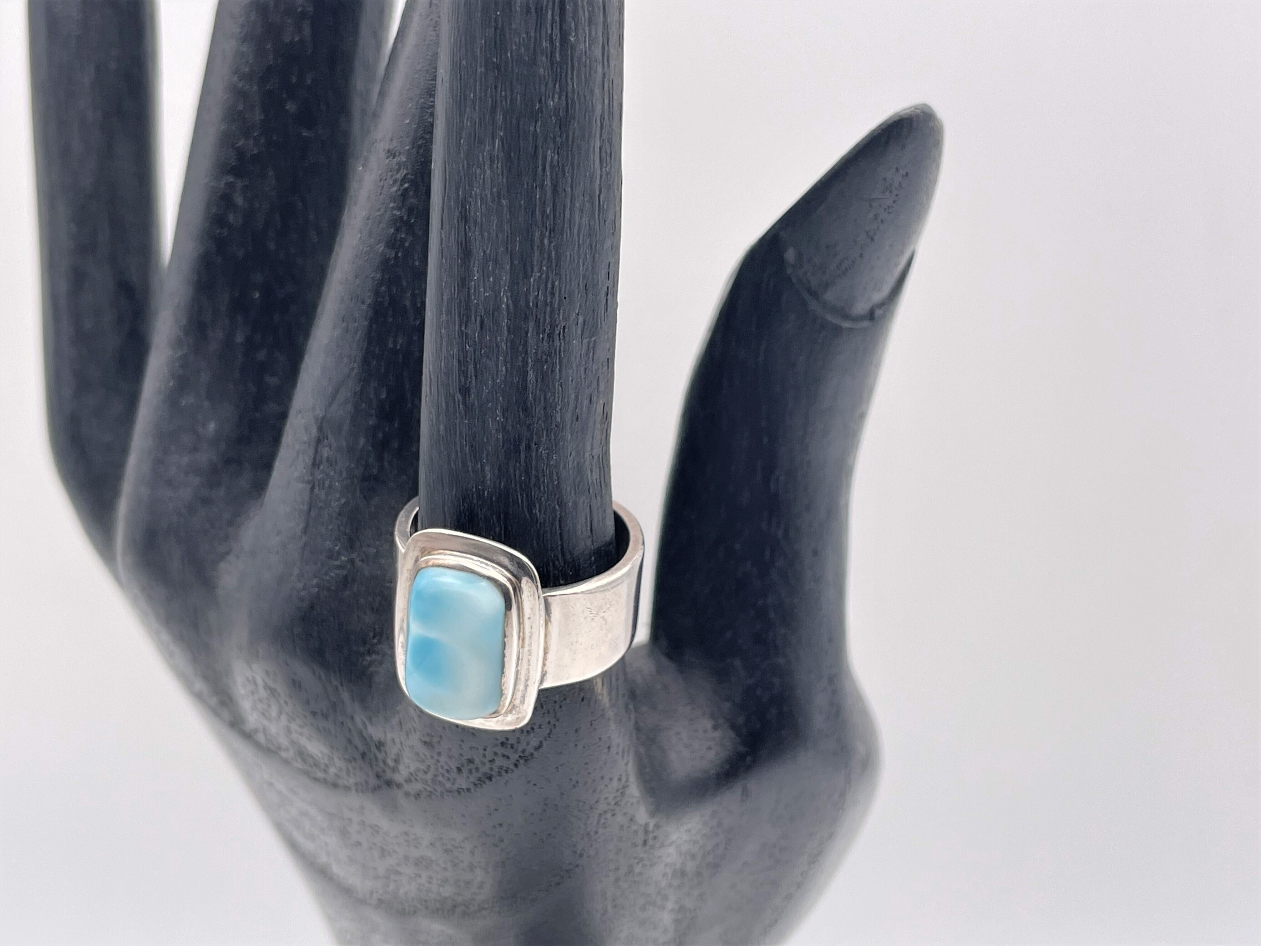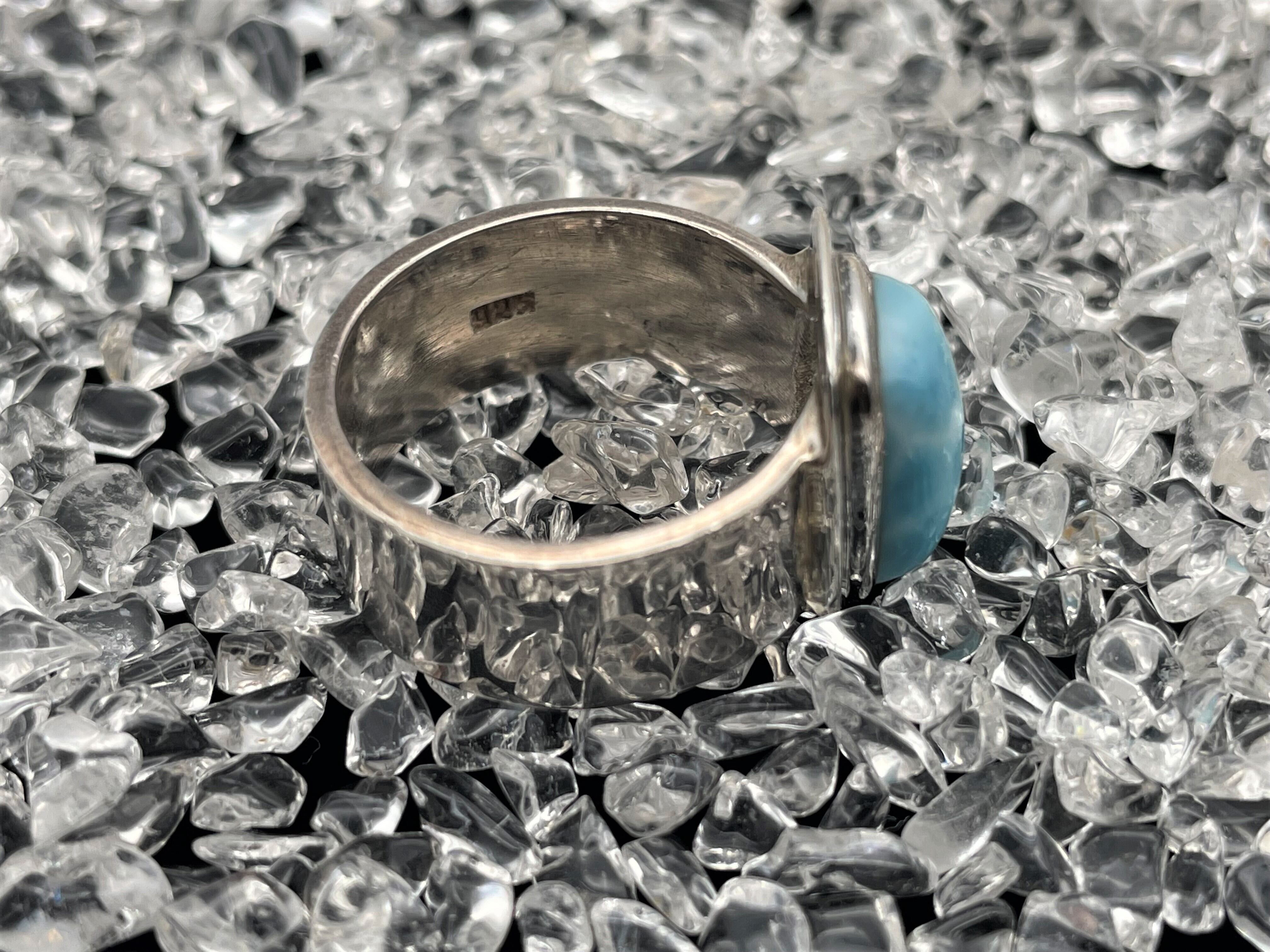 ラリマーが埋め込まれた925シルバーリングになります。