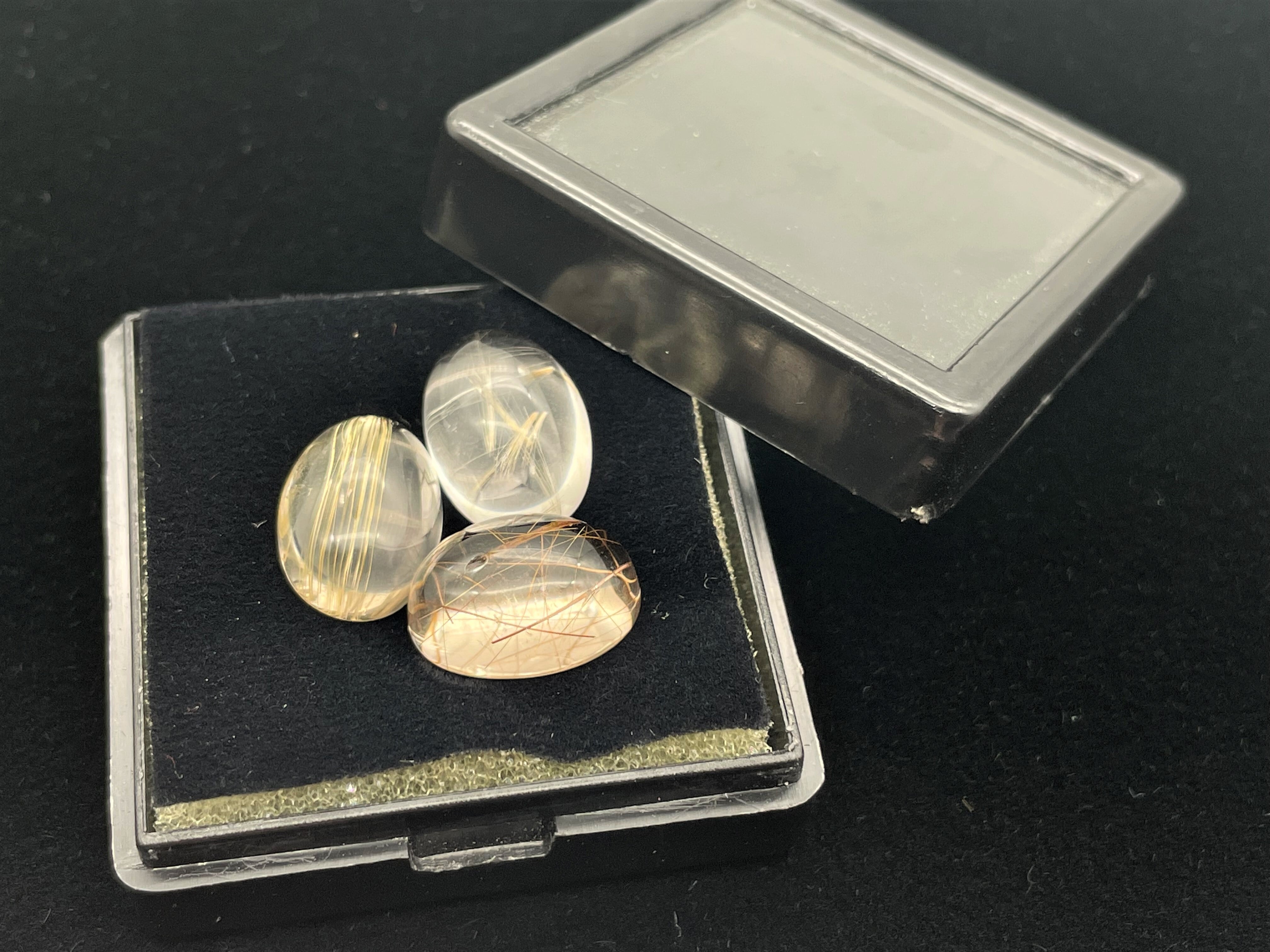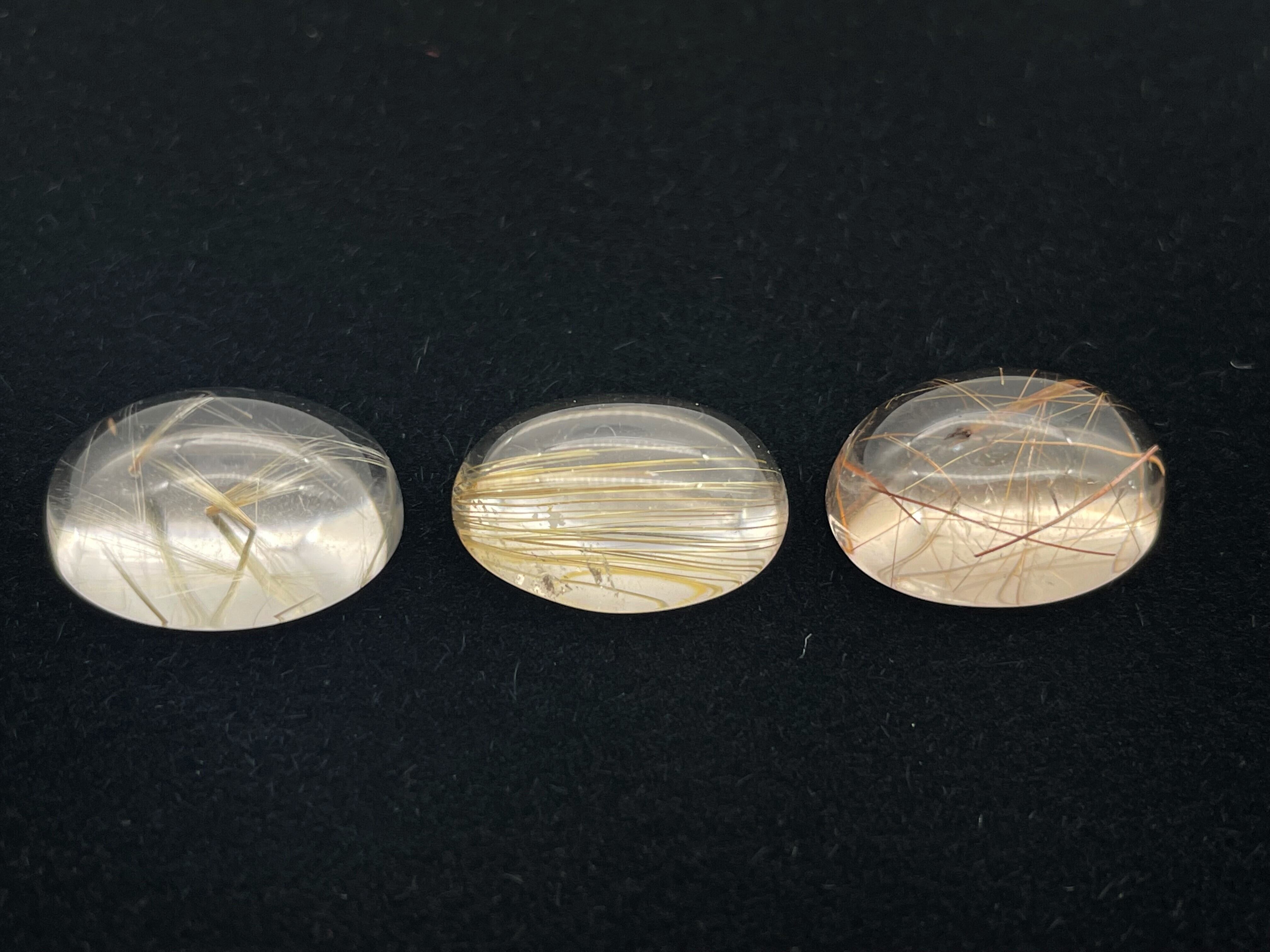 ルチルクォーツのルース素材の3つセットになります。金具等は付属しておりませんので、オリジナルハンドメイドの作成にぜひご利用ください。