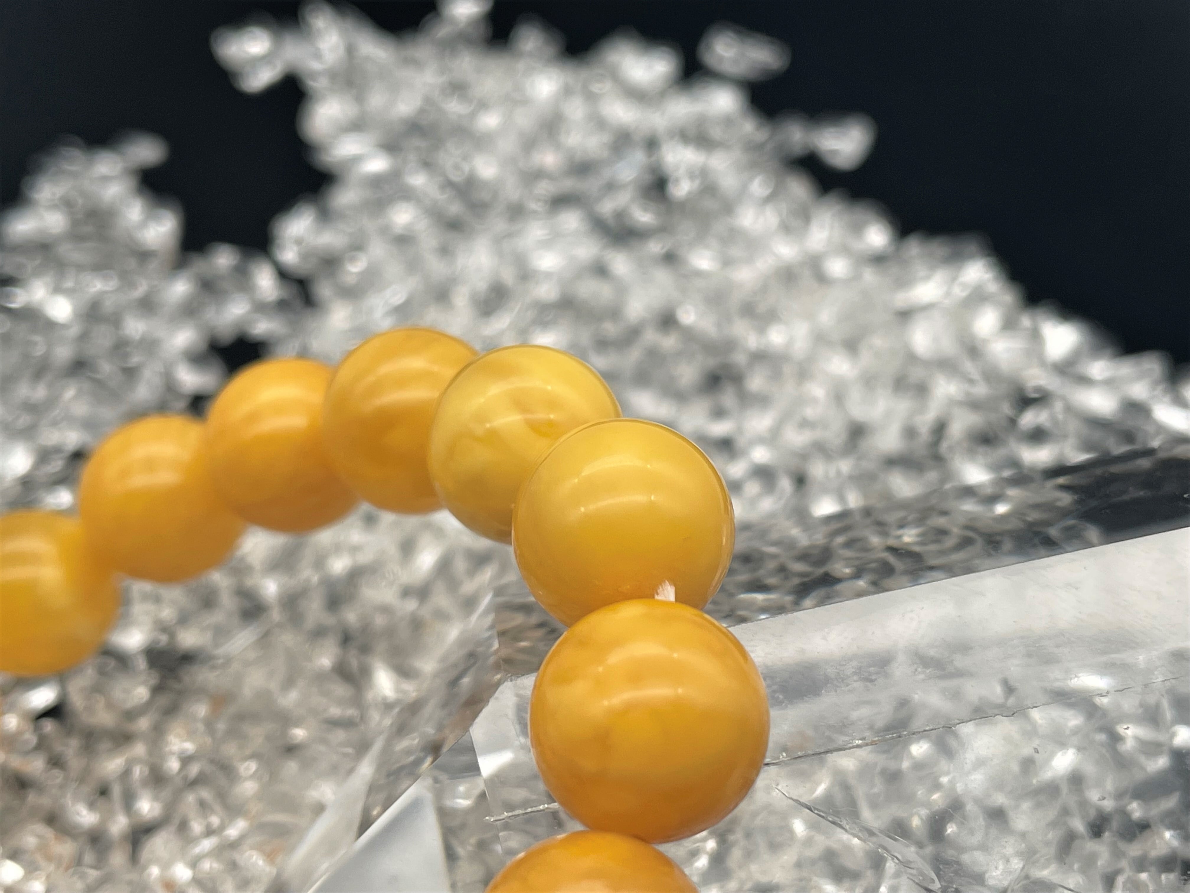 蜜蝋琥珀は半透明で蜜蝋に似ている事から、ハニーアンバー(蜜蝋琥珀)と呼ばれるようになったと云われております。富と健康をもたらし、新たな活力を与えて免疫・抵抗力を強くし、生命力を高めると云われ、安産や子宝のお守りとして活用される事もあります。