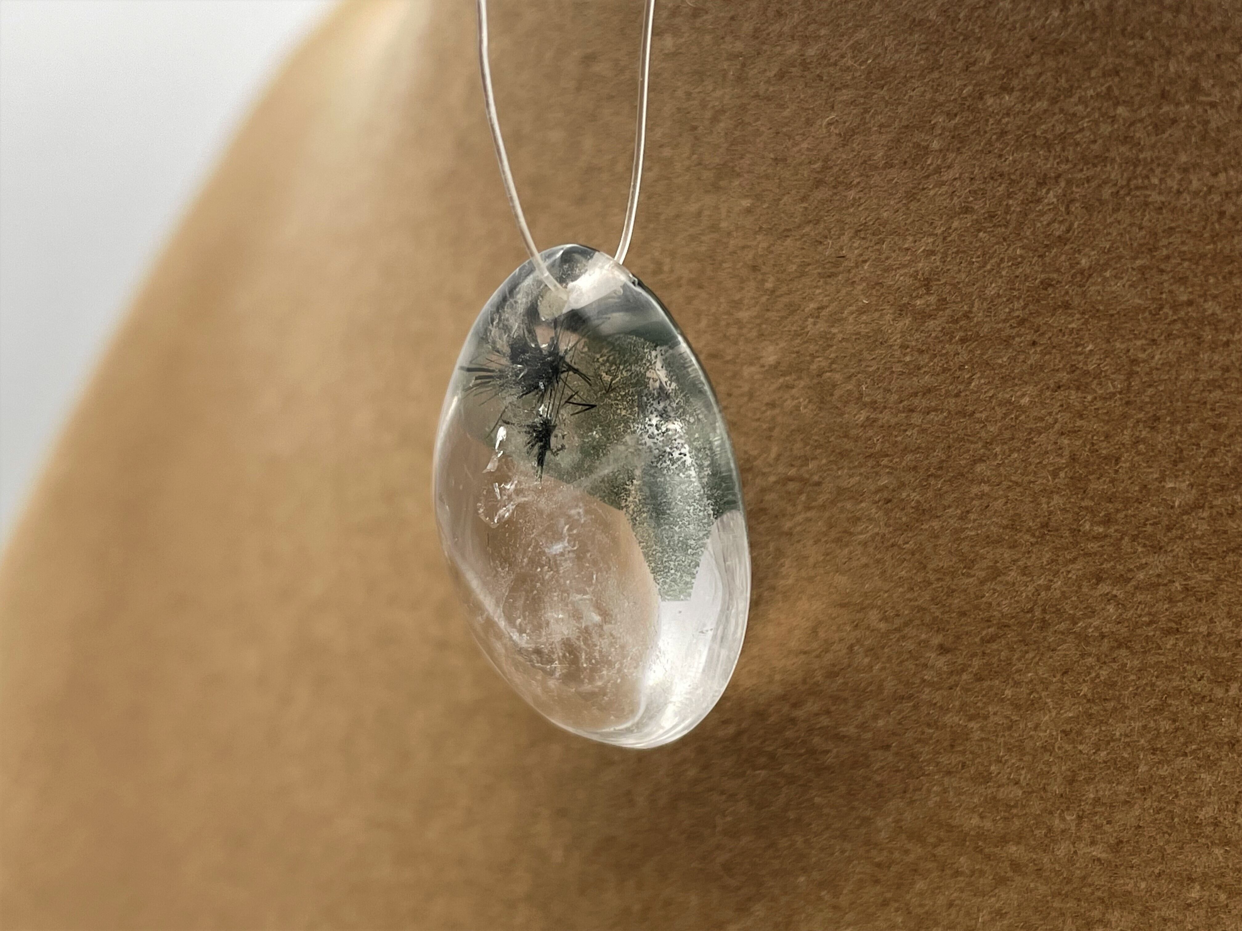 グリーンファントムクォーツとルチルクォーツが一対になったペンダントトップ用の素材になります。