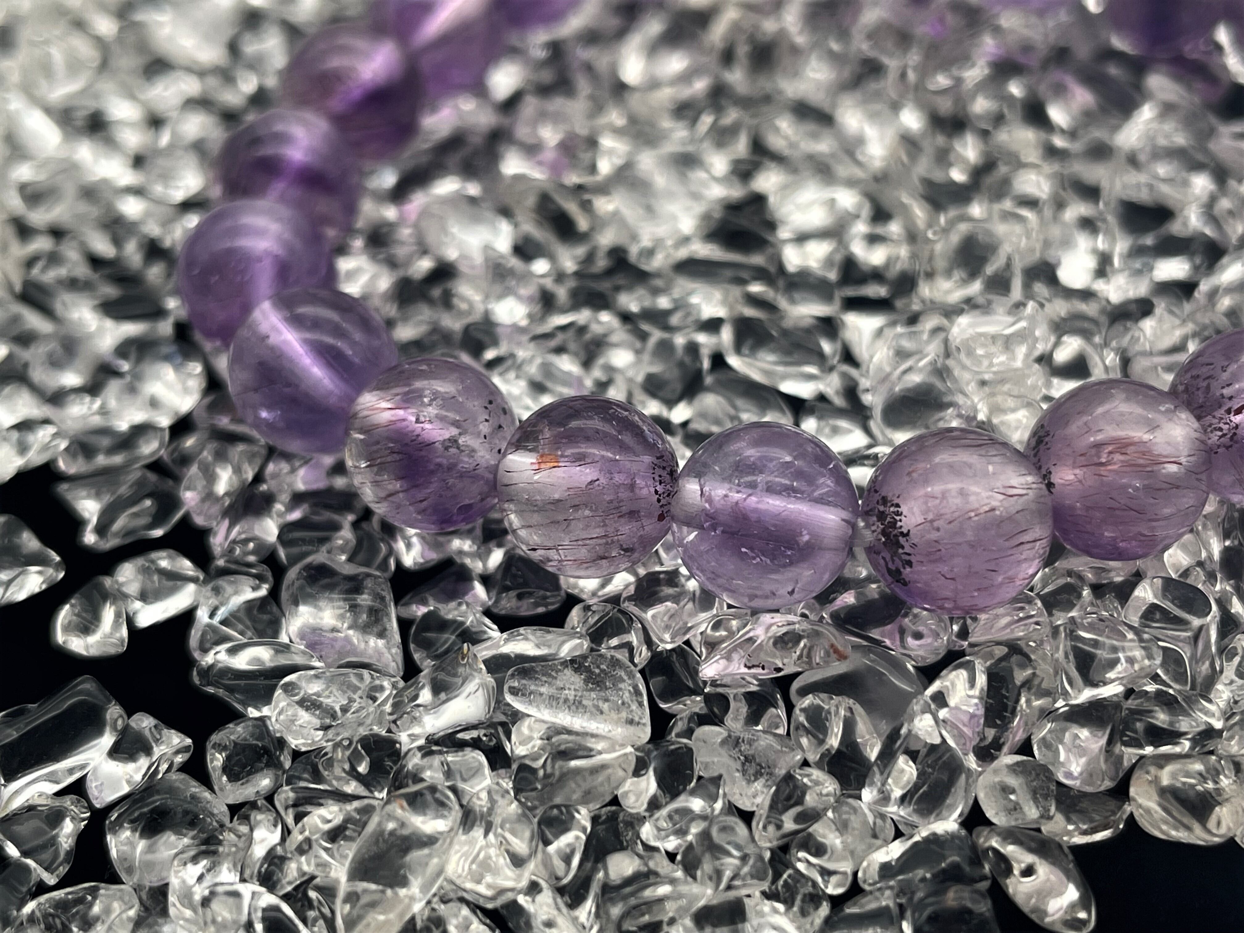 スーパーセブンとは【水晶】【アメジスト】【スモーキークォーツ】【カコクセナイト】【レビドクロサイト】【ゲーサイト】【ルチル】の7種類を全て含んだ結晶の事を云います。