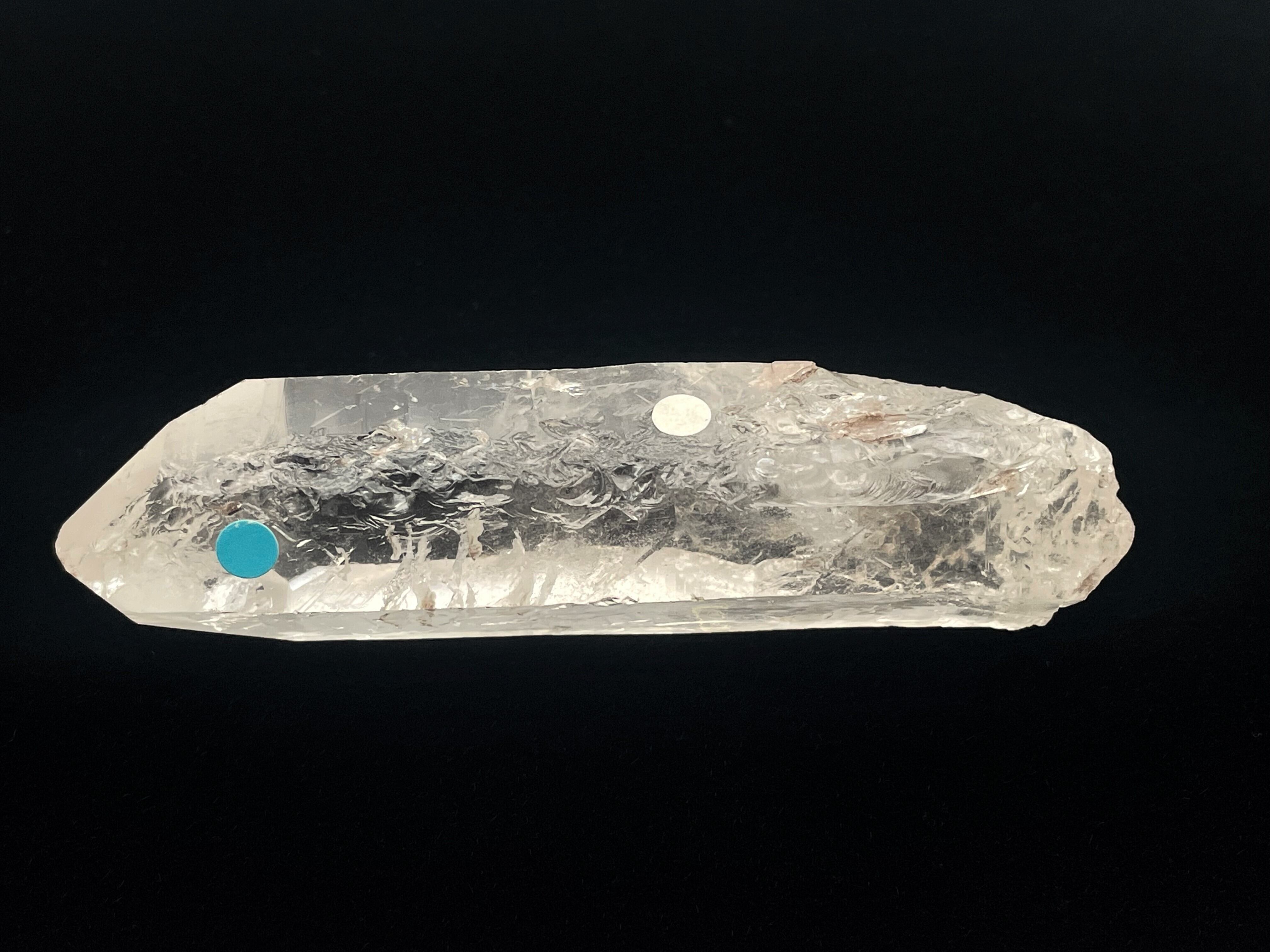 ライトニングクォーツは、地中にある水晶に地表に落ちた落雷を受けるという極めて特殊な条件のもと、雷のエネルギーを記憶した極めて強力なパワーを持っている水晶と云われております。稲妻によって出来た傷痕は、落雷によって水晶が瞬時に高温に達する事で、瞬時に変容したもので、「クリストバライト」と呼ばれております。(シールの面がクリストバライトになります。)