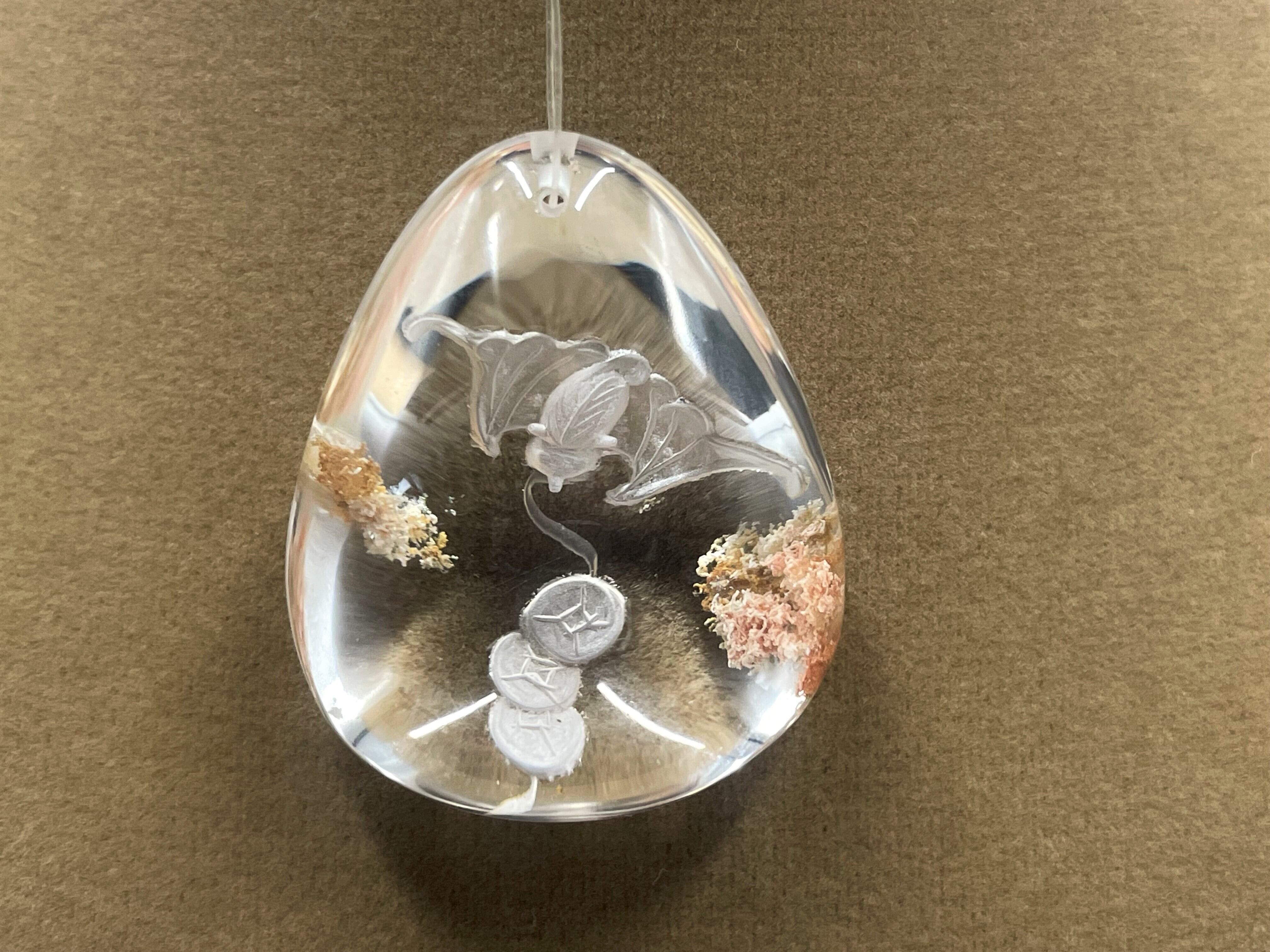 コウモリがデザインされたガーデンクォーツのペンダントトップ用の素材になります。