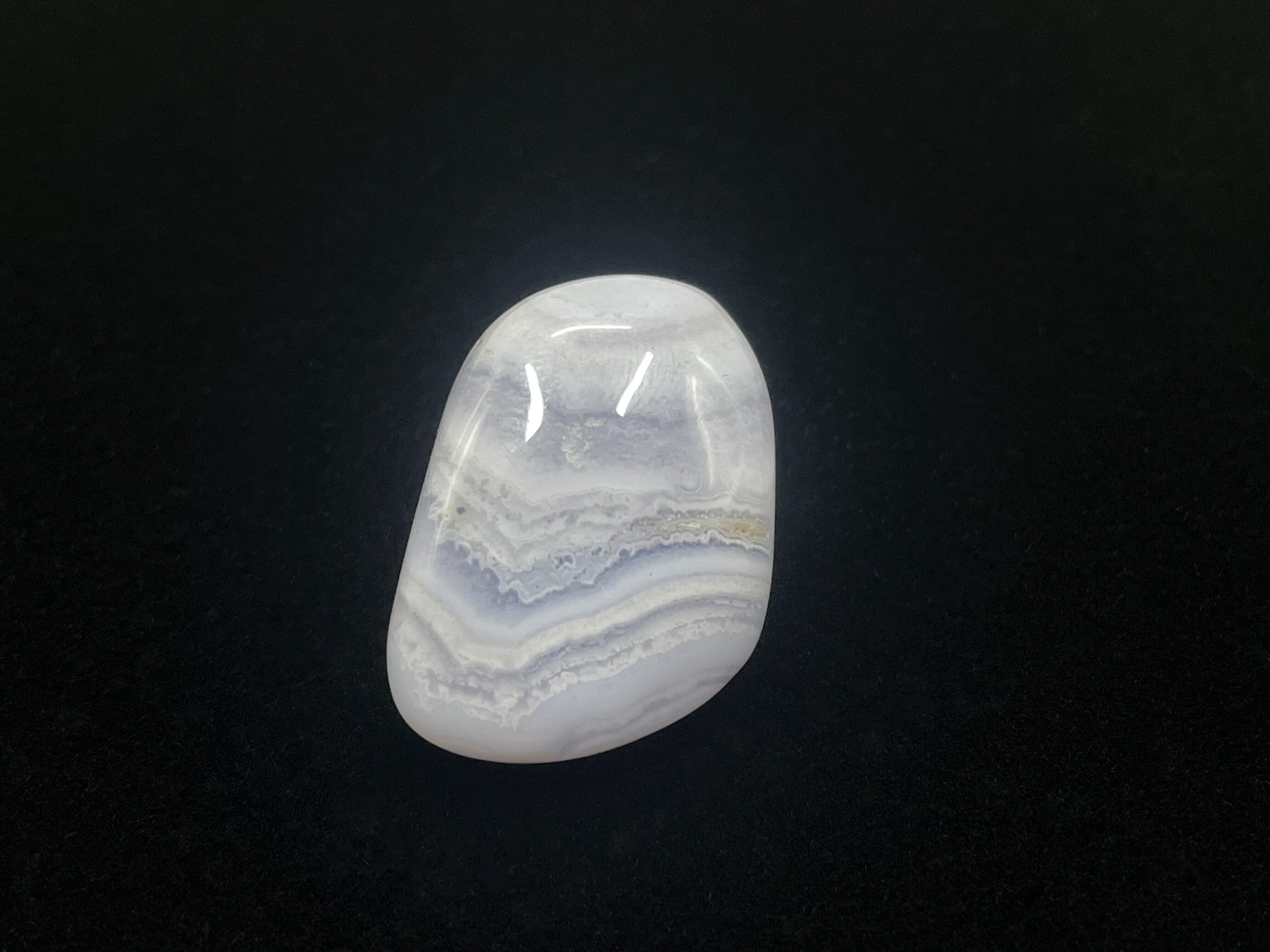 ブルーレースアゲートは深く優しいエネルギーを持つ石とされ、自然な表現力をもたらし、精神や肉体を癒し、人間関係を良好な状態を保つ役割をしてくれると云われております。