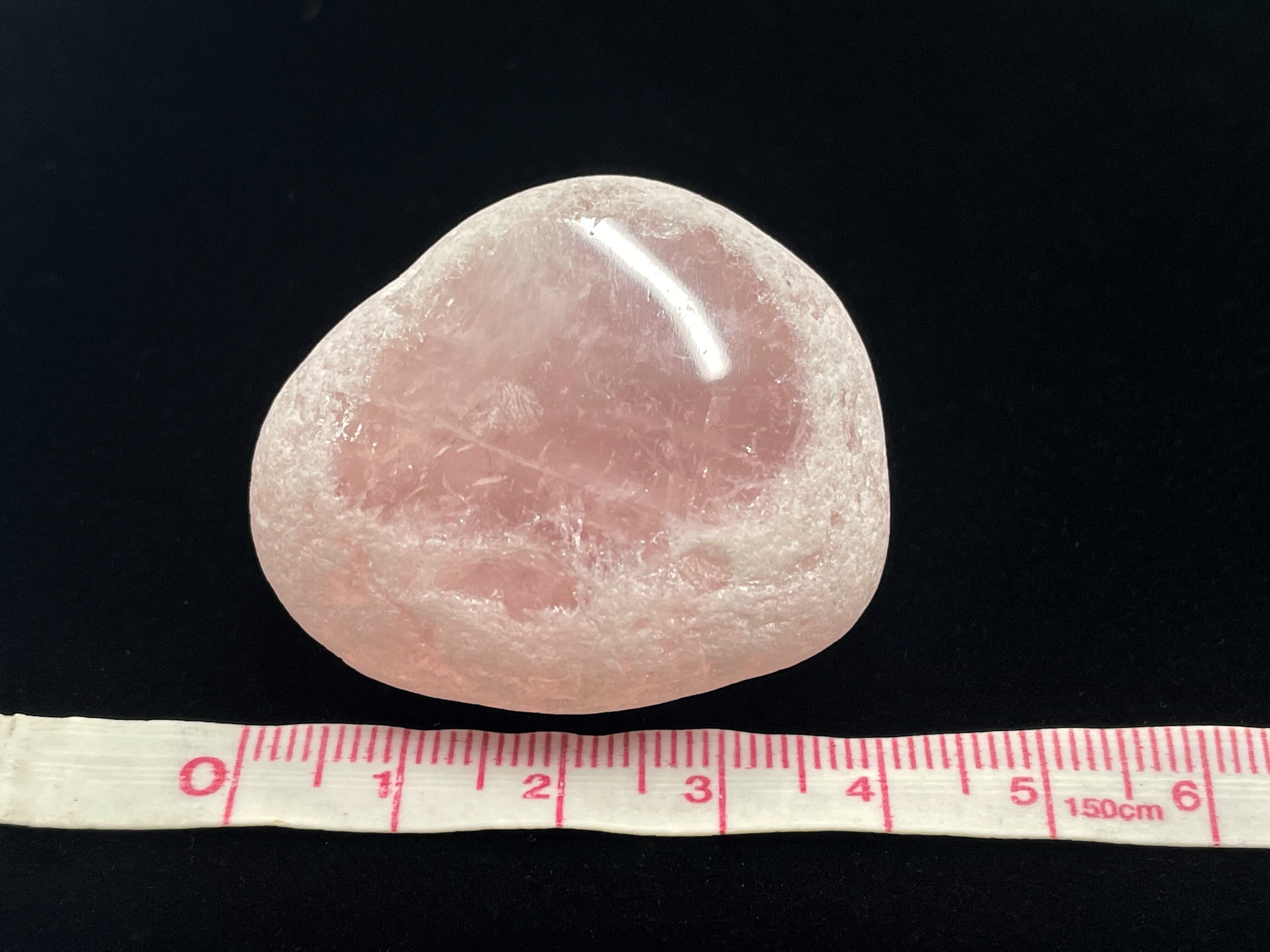 一部にポリッシュがかかったローズクォーツの川流れ水晶になります。