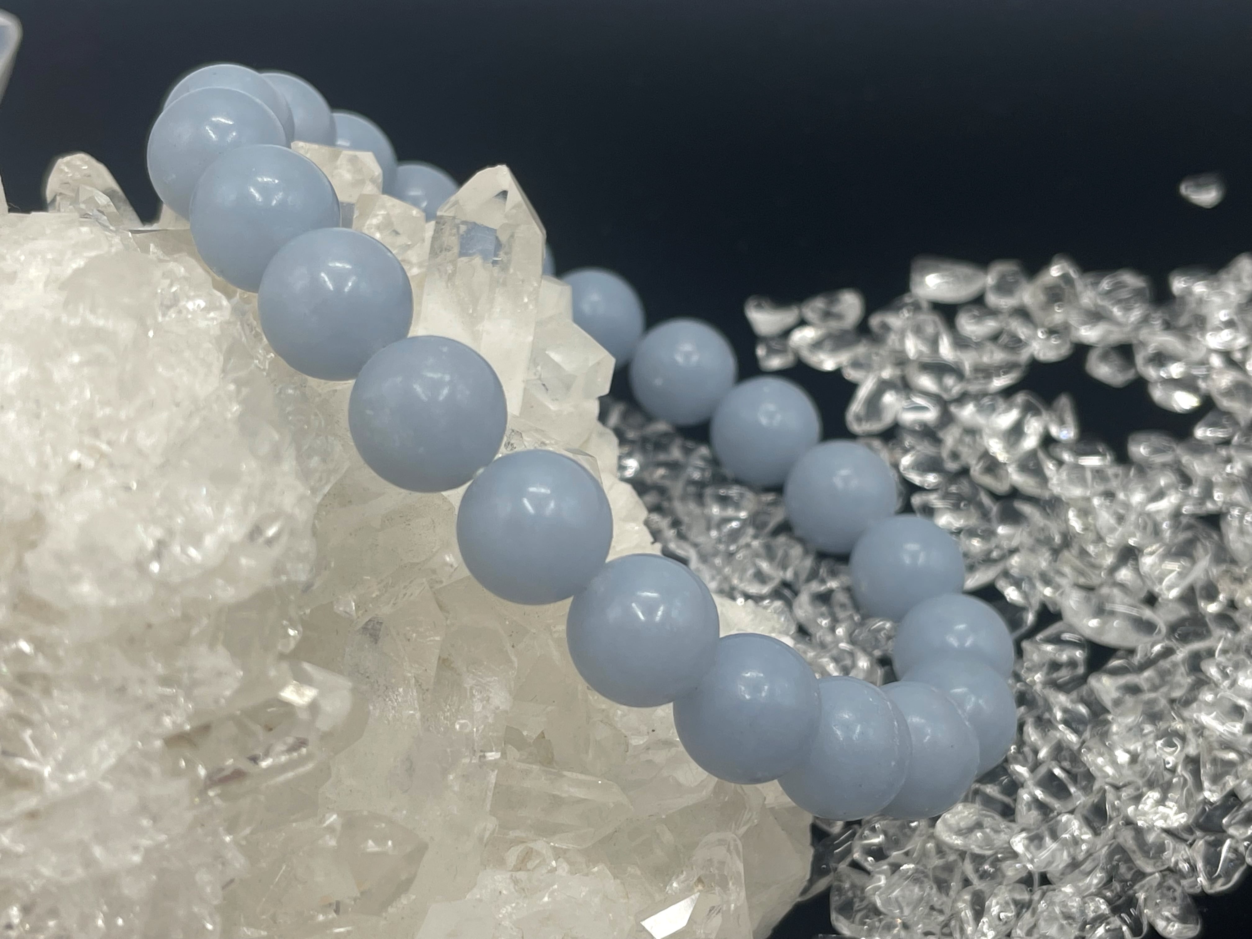 エンジェライトはアンハイドライトと呼ばれる鉱物の一種であり、人生における大切なものに気付かせ、それらに対して広く愛の心を持つように導くと云われております。
