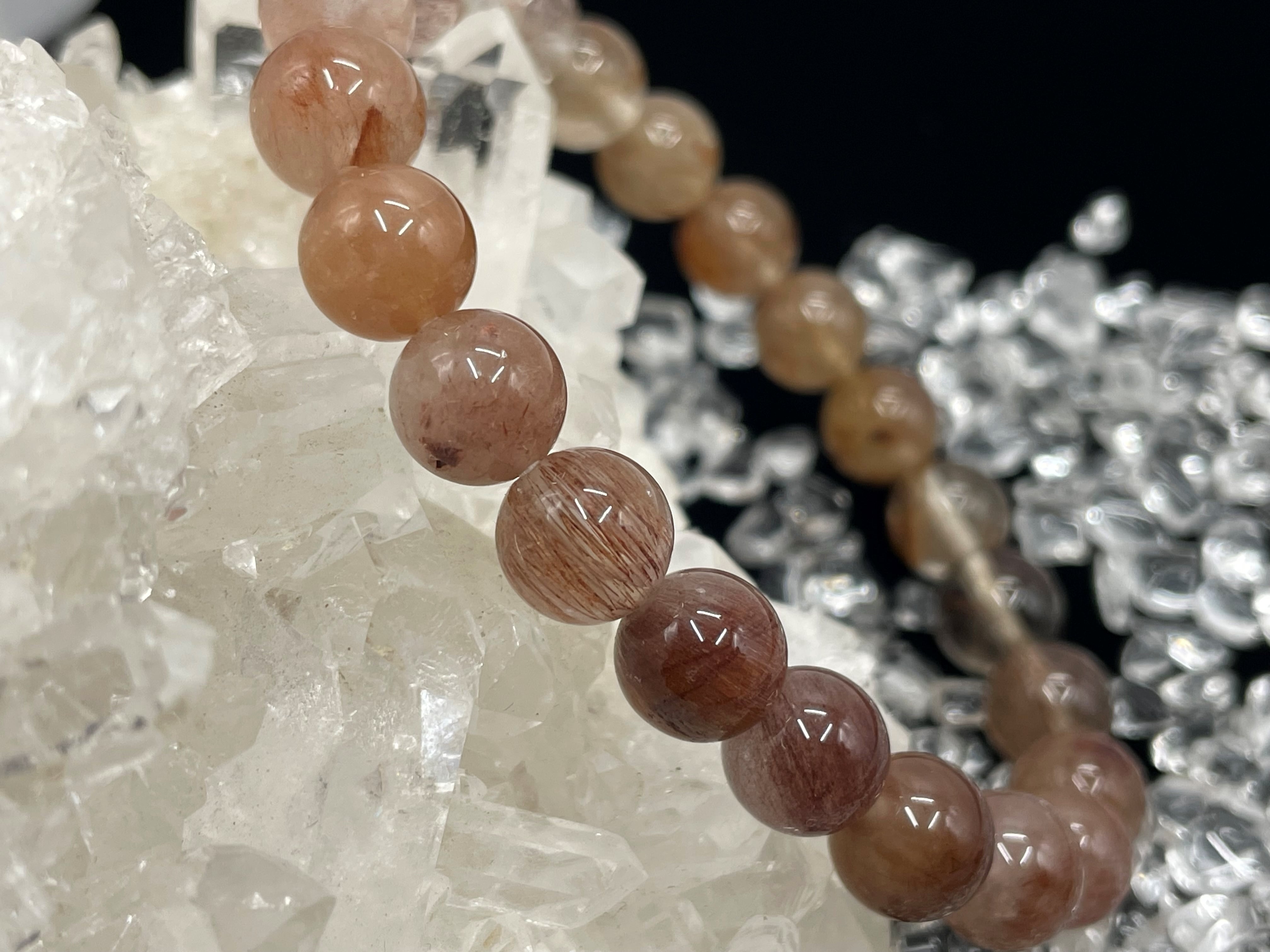 ルチルクォーツは金運の石として非常に有名であり、事業の成功・金運を高めるの他、危険を察知し、周囲と強い信頼関係を作るお守りとしても用いられております。その中でもレッドルチルクォーツはルチルクォーツの中でも愛情や情熱の感情を豊かにしてくれると云われ、恋愛成就や子宝のお守りとして女性に人気があります
